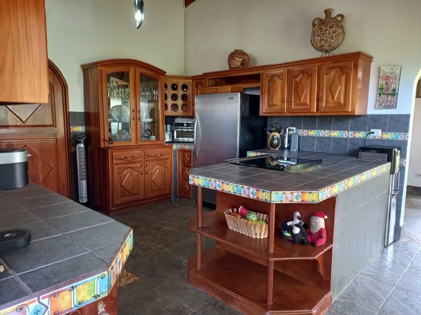 La cocina es amplia, luminosa y perfectamente diseñada para disfrutar cada momento. Cuenta con generosas superficies de trabajo, muebles de fina madera y una práctica despensa de gran tamaño. Las puertas de vidrio llenan el espacio de luz natural y ofrecen una vista encantadora del jardín, creando el ambiente ideal para cocinar y compartir.